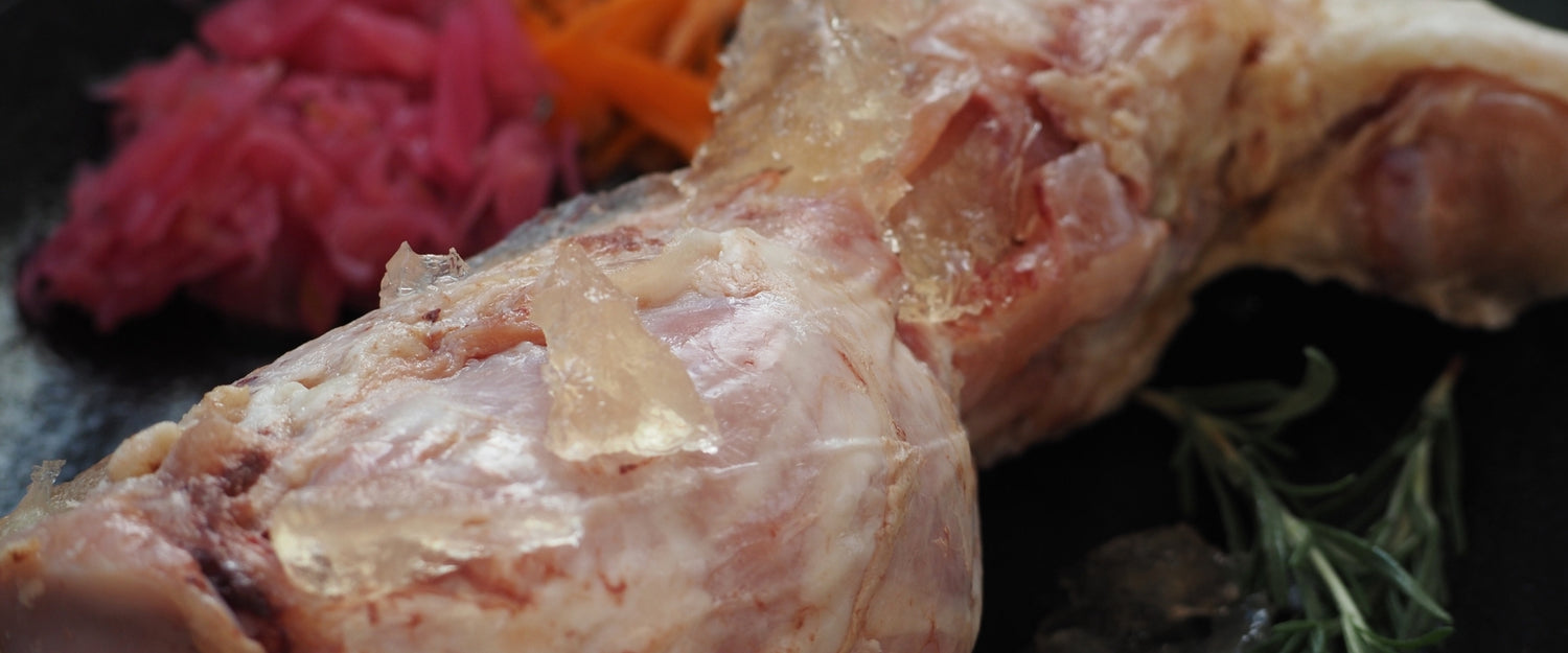 豊富なコラーゲンを、時間をかけて引き出しました。人工では出せない、自然が生み出す深いコク。ドイツの伝統が息づく、滋味あふれる味わいです。